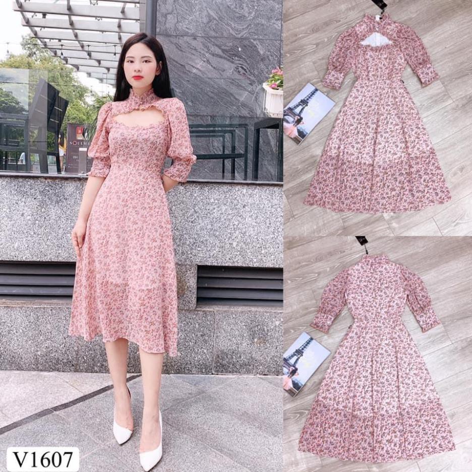 Đầm Váy Đẹp Thiết Kế DVC 💗 FREESHIP ❤️ Đầm xòe hoa nhí tay bèo V1607